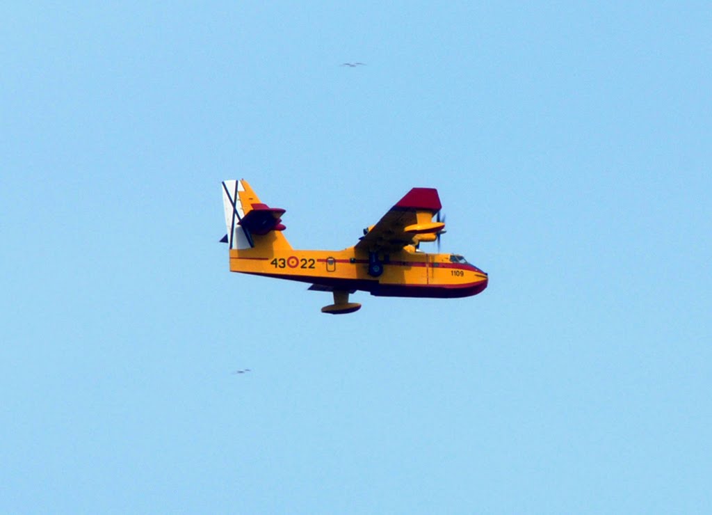Desgraciadamente, tenemos que hablar de la presencia de medios aereos contraincendios en Ibiza, debido al mayor incendio que ha sufrido la isla de Ibiza y que ha arrasado 1500 hectareas en el norte de la isla, desde la sierra de Morna hasta las inmediaciones de Cala San vicente y San Juan. arriba y abajo vemos dos hidroaviones descargando agua sobre un foco del incendio. Los medios aereos fueron numeros,con 8 Canadair,5 AirTractor (2 de ellos anfibios),4 helicopteros del govern balear,dos helicopteros de la UME,el helicoptero del 112,el helicoptero de la guardia civil,el helicoptero de vigilancia de la UME y una avioneta de vigilancia del govern balear...casi nada al aparato.